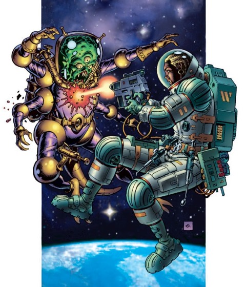 It kicks off from 12 noon with a free Comica Comiket offering the chance to purchase great comics and graphic novels direct from publishers like Rebellion (2000 AD), SelfMadeHero, Knockabout, First Second, Soaring Penguin, Centrala Books, Escape Books and more, while House of Illustration are running a series of workshops on board the barge. Then from 7pm to 8.30pm I will be interviewing Dave Gibbons, stellar writer and artist from Dan Dare and Watchmen to Martha Washington and Kingsman: The Secret Service, live from the barge. He’ll also be answering your questions, drawing live and signing limited edition prints of this Martha Washington pin-up (below) in aid of charities.