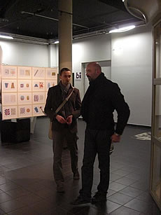 Jochen Gerner (L) at his exhibition opening.