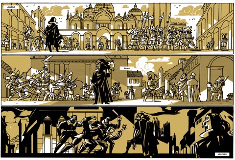 This question would need a whole book to answer. Let us say that Spain has always had a very strong comic tradition. But also that it has always been very much centred on the country’s issues itself. You needed to have the key to fully understand and enjoy Spanish comics, at least until the last decades of the last century. Nowadays, the Spanish comic scene is as global as any other can be, and the quality of the authors is really impressive, but the industry here is not so strong to hold onto them. Many of them are working for the French or American markets. But let me tell you just about one very recent book, probably the best so far this century: Las Meninas, the famous painting by Velázquez, written by Santiago García (script) and Javier Olivares (drawing) (below). It is a masterpiece, and I’m not joking.