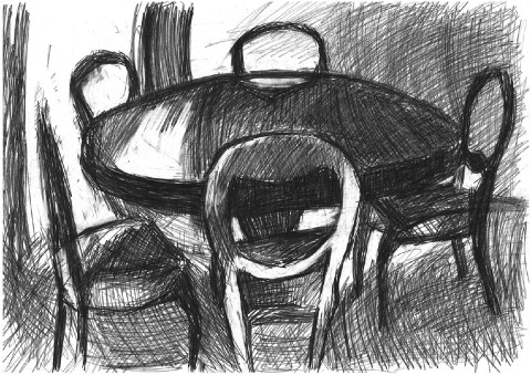Unlike most first-person graphic novelists, Lightman tends to avoid representing herself, preferring potent symbols like a glass of water or a table surrounded by empty chairs, sensitively recorded in pencil. “I see my object drawings as a cross between visual haiku and vanitas still life painting, where our mortality and humanity become evident. I see a chair the same way - almost unnoticeable in a person’s presence, but a constant reminder of their absence.” She conveys this poignancy in her short animation film Family Table by personalising the original wording of Psalm 133 – “How good and pleasant it is when brothers sit together” – to also encompass sisters, mothers, fathers, grandmas and grandpas. This was how she experienced the psalm itself and the dinner table on Friday nights (see animation video below).