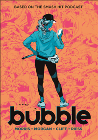 An adult graphic novel with a hilarious and satirical take on the “gig economy” as the residents of Fairhaven constantly hire the nearest monster hunter to keep their lives somewhat peaceful and intact. Based on the smash-hit audio serial, Bubble is a hilarious high-energy graphic novel with a satirical take on the “gig economy.” Built and maintained by corporate benevolence, the city of Fairhaven is a literal bubble of safety and order (and amazing coffee) in the midst of the Brush, a harsh alien wilderness ruled by monstrous Imps and rogue bands of humans. Humans like Morgan, who’s Brush-born and Bubble-raised and fully capable of fending off an Imp attack during her morning jog. She’s got a great routine going — she has a chill day job, she recreationally kills the occasional Imp, then she takes that Imp home for her roommate and BFF, Annie, to transform into drugs as a side hustle. But cracks appear in her tidy life when one of those Imps nearly murders a delivery guy in her apartment, accidentally transforming him into a Brush-powered mutant in the process. And when Morgan’s company launches Huntr, a gig economy app for Imp extermination, she finds herself press-ganged into kicking her stabby side job up to the next level as she battles a parade of monsters and monstrously Brush-turned citizens, from a living hipster beard to a book club hive mind. Jordan Morris is a writer and podcaster living in Los Angeles. He’s worked on projects for Comedy Central, Cartoon Network and Disney. He’s also the co-host of the well-liked but not super popular podcast Jordan, Jesse, Go! He lives with one cat and still knows all the fatalities for the original Mortal Kombat. He is beyond thrilled to be making comics. Seriously, it feels like a dream. Sarah Morgan is a writer for TV and radio. Her credits include Intelligence, the BAFTA Film Awards 2020, Not Going Out, Horrible Histories, the Tracey Ullman Show, That Mitchell And Webb Sound and Bigipedia. She is also the creator and host of a spooky podcast called The Fear. She lives in London with her family and enjoys ales served at the appropriate temperature. Tony Cliff is the New York Times Bestselling author of the critically-acclaimed Delilah Dirk series of adventure graphic novels. He has also written and illustrated Let’s Get Sleepy, a seek-and-find children’s story about cats, a mouse and the value of a day well-lived. He lives in Vancouver, BC, is a veteran of that city’s animation industry, and is a long-time Jordan, Jesse, Go! listener. Natalie Riess is a cartoonist from Pennsylvania. She now lives in Austin, TX, where she makes comics with her girlfriend and gets yelled at by their beautiful cat. She loves to draw food, nature, and horrible plant monsters. Her previous titles include Space Battle Lunchtime and Snarlbear. 272pgs colour hardcover / paperback.