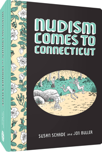 Nudism Comes To Connecticut is a fascinating graphic memoir of optimism, debt, nakedness and real estate scheming in the early 1930s. Frank Mallett, inspired by cooperative colonies he had visited in Europe, returned home envisioning utopian communities of bohemian emigrés and artistic intellectuals proliferating in sylvan harmony. With the crash of 1929 his already floundering enterprises seemed doomed - until he discovered a growing interest in healthy, wholesome nudism. Closely based on actual people and events, Nudism Comes to Connecticut exposes the conflict between the ecstasy of the “exquisite naked plunge” and voyeurism, competitiveness and greed by way of many period writings and letters. Although Frank’s love of nature never falters, he learns that there is more to nudism than meets the eye. Nudism is veteran children’s book authors Jon Buller and Susan Schade’s first published graphic novel, lovingly rendered in delicate, indeed, enticing, pen lines. Originally published in 2015 by Ayre Press. 168pgs two-colour hardcover.