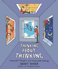 A playful examination of the way we think (and overthink) by cartoonist Grant Snider, creator of Incidental Comics, which appear regularly in the New York Times Book Review. Thinking About Thinking—the latest sly and charming collection of one- and two-page haiku-like comics from cartoonist Grant Snider—explores our inner life, using colourful illustrations and clever visual metaphors to depict the spectrum of our emotions. Facing self-doubt? Overcoming fears? Grappling with indecision? Snider doesn’t present solutions to these challenges, but he does inspire and encourage, offering thoughtful reassurance and a unique, humorous perspective that’s characteristic of his work—an approach that resonates with millions of readers all over the world. Emotions can be tricky to navigate. We overthink. We second-guess. And we can’t get out of our own way. The reality is, it’s impossible for any of us to understand our complicated feelings fully. But fear not, because you’ve come to the right place. 128pgs colour hardcover.