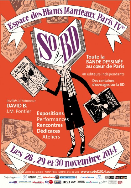 This weekend brings the 4th SOBD or Salon des Ouvrages sur la Bande Dessinée. Yes, the French create and publish enough of these comics histories, monographs, artbooks, biographies and more to dedicate a whole festival to them and their authors. This year there’s a special spotlight on British comics with a series of panel discussions on the Saturday afternoon with special guests Hannah Berry, Dave McKean, Ann Miller, Pat Mills, Kevin O’Neill and myself. There are also exhibitions (including one on David B. who did the festival poster, above) and forty publishers offering their range and authors signing books. It’s entirely free, just register for your badge - so if you’re in the arrondissement, do drop by!