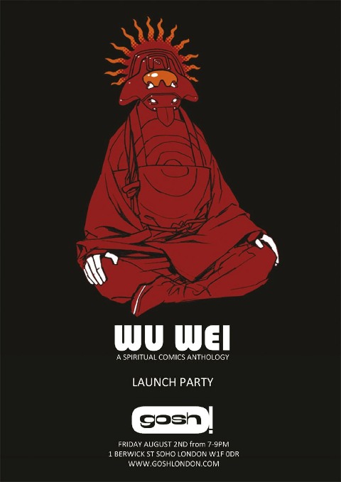 Creator-publisher Mike Medaglia is launching his anthology of spiritual comics, Wu Wei, tonight at Gosh!, 1 Berwick Street, Soho, London W1F 0DR from 7pm. Glyn Dillon of The Nao of Brown fame has designed the cover (above). Mike explains: “‘Wu Wei’ is a Taoist term meaning non-action. To practice Wu Wei is to act in a natural way and reveal one’s own nature.” The anthology offers 100 pages for £6 of funny and inspirational stories, illustrations, poetry, an abstract comic, origami comic and the final panel is a pull out concertina. If you can’t be there tonight, you can order online here.