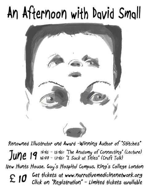 Small will also be giving a Keynote presentation on Wednesday June 19th at the Narrative Medicine conference at New Hunts House, King’s College from 2.45pm. Limited non-delegate tickets are available just for David’s two sessions till 5.45pm at £10. Book online here!