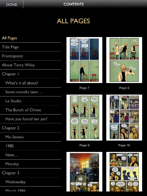 The app collects together almost 100 pages of comics comprising the whole of VerityFair Part 1 - Chapters 1, 2 and 3 published between May 2010 and November 2011. Almost every comics page has audio commentary recorded by Terry Wiley exclusively for the app. VerityFair Part 1 is supplemented by a whole host of extras including sketches and artwork, seven strips and stories including Sleaze Castle and Surreal School Stories, and an exclusive interview with Terry Wiley (see partial contents page above). Don’t miss this great deal!