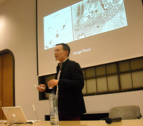This photo of me by Charles Hatfield from the ACME Conference on Independent Comics Worldwide in Liège, Belgium. Here’s the cool poster: