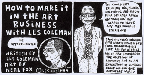 After his studies at Camberwell College of Arts, Neal Fox was unsure how to continue making his art and was jokingly advised by Les Coleman to “Paint cats.” Out of their shared satirical perspective evolved a stinging script by Coleman entitled How To Make It In The Art Business, which Fox illustrated as a one-page comic. Read the full article here…