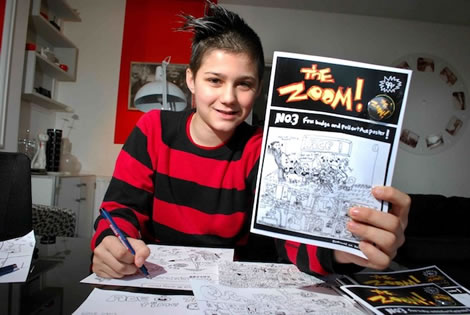 I’ve just been reliably informed that the precocious 10-year old cartooning prodigy Zoom Rockman (and yes that is his real name not a pen-name!) will be joining Ilya and me tomorrow night Friday March 25th at the free opening event of Westminster Libraries’ PENCIL IT! season on comics, manga and graphic novels. An avid Beano reader, Zoom publishes his own comic, cannily called The Zoom, and was featured recently on CBBC Newsround and BBC Breakfast as part of a report on the 60th birthday of Dennis the Menace. Can’t wait to meet this future UK comics superstar!